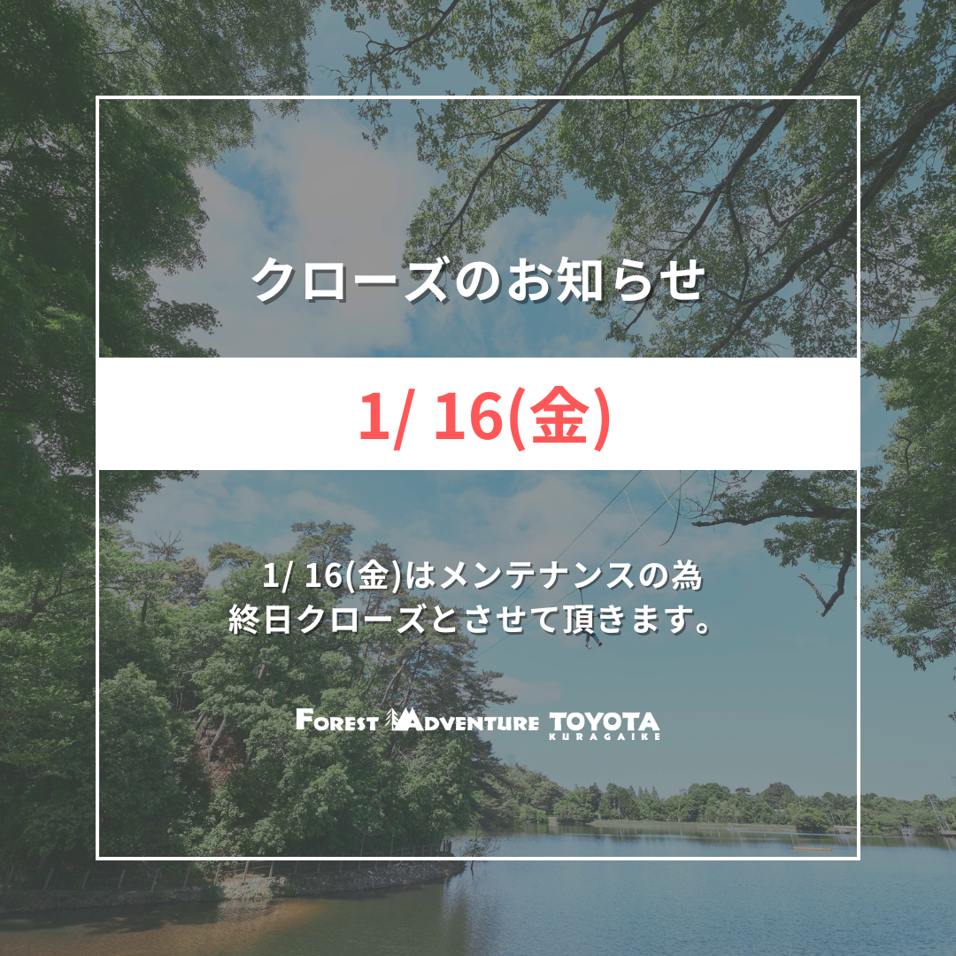 1/16(金)はメンテナンスの為クローズとさせて頂きます。